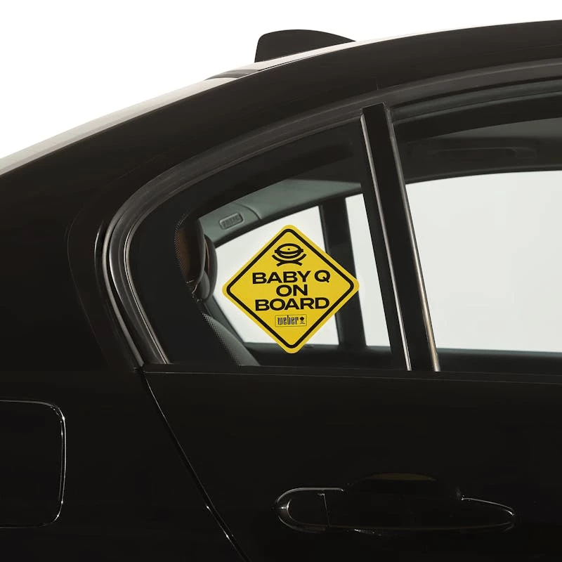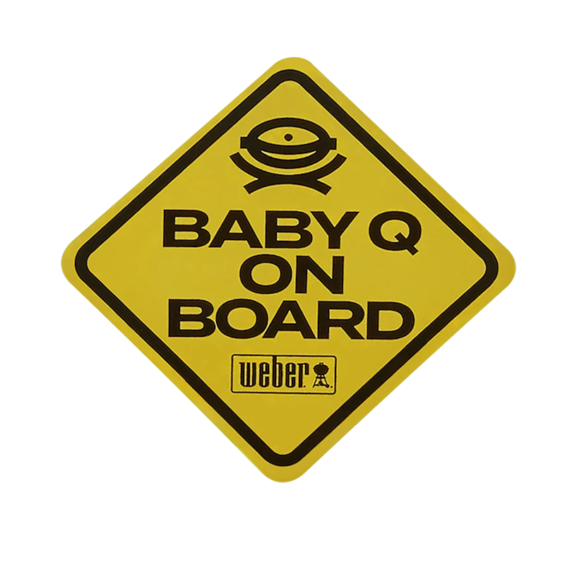 Let other drivers know that the newest addition to your family is on-board. The Limited Edition Weber “Baby Q On Board” Car Decal is a vibrant color that makes it visible from a distance, alerting cars about your precious cargo. The high-quality vinyl material allows for easy application to your vehicle’s window.