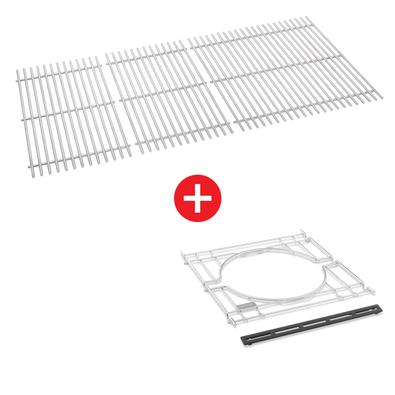 Use the WEBER CRAFTED starter kit to replace the existing cooking grates on your SMOKEFIRE EX6 with the WEBER CRAFTED cooking grates and WEBER CRAFTED frame kit. It’s everything you need to create endless options for everyday grilling with the WEBER CRAFTED Outdoor Kitchen Collection of custom-fit grillware (sold separately). Kit includes the WEBER CRAFTED Frame Kit Part Number #7678 and Cooking Grates #7859.